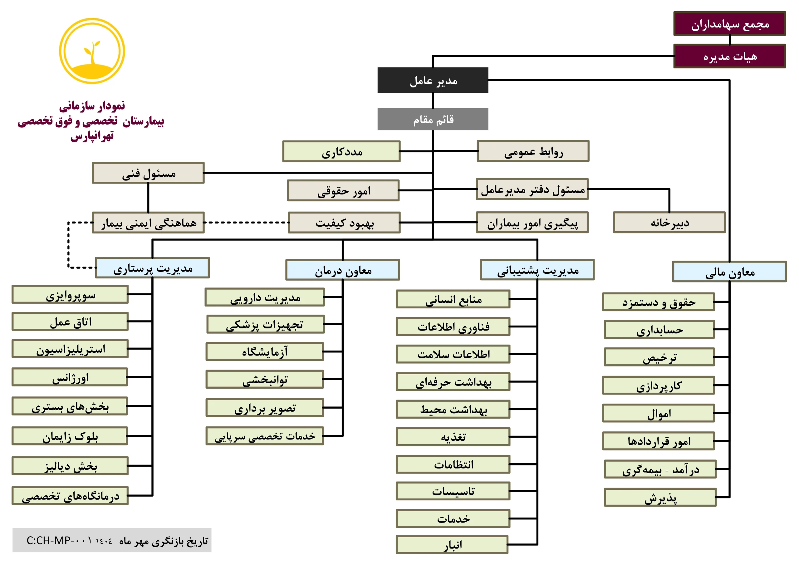 چارت سازمانی بیمارستان تهرانپارس